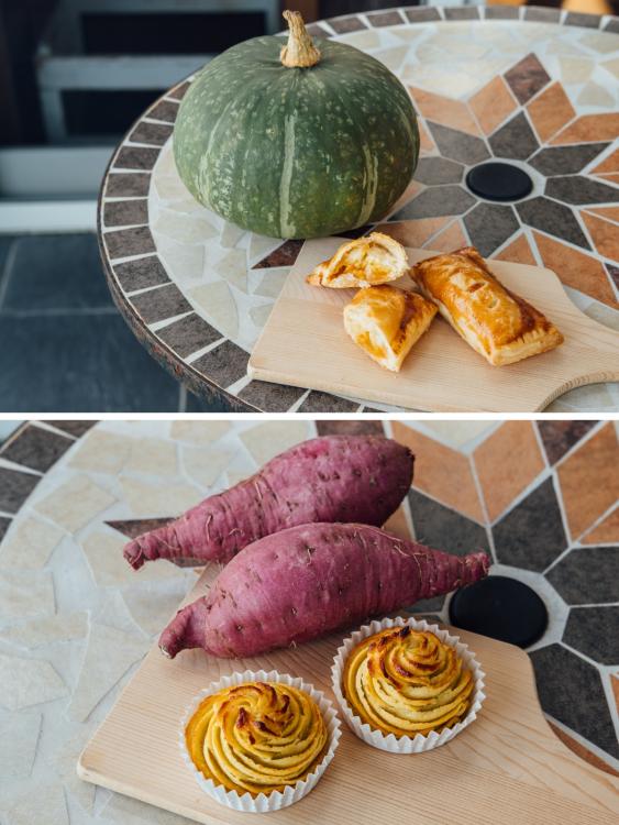 秋になると、地元のたぬき農園から届くさつまいもやかぼちゃが主役となります。「さつまいもは掘ってからしばらく置くことで甘みを出すんです。今はまだ準備中ですが、パンプキンパイやさつまいものケーキを予定しています」。