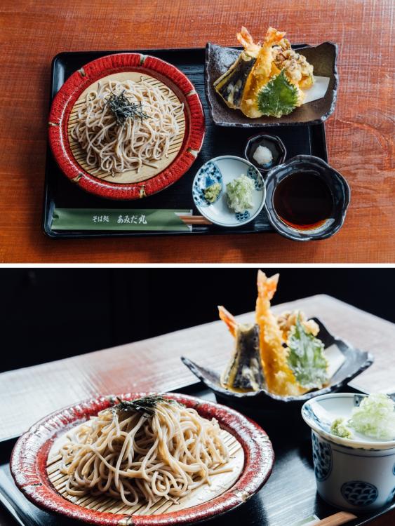 この独自の蕎麦とつゆは、テレビ番組でも紹介され、話題となった。おすすめメニューは「天ざる」(税込1,700円)で、見た目も美しくボリュームがあることから、多くの客に愛されている。