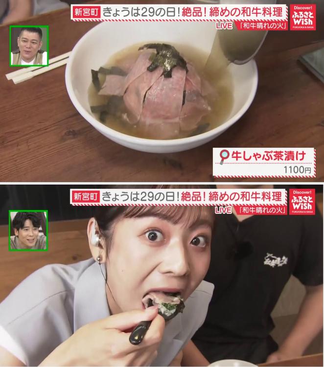 緑茶ベースの出汁をかけていただく、上品で贅沢なお茶漬け。深川リポーターも終始大満足の様子でした。