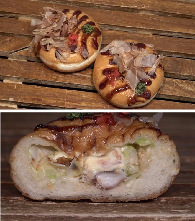 キャベツ、天かす、小エビ、そしてタコを生地で包んで揚げた、遊び心満載の変わり種。見つけたら即ゲットしたい、売り切れ必至の一品です!