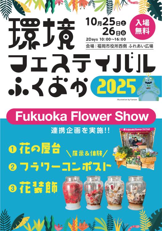 10月25日(土)・26日(日)の2日間、福岡市役所西側ふれあい広場にて開催される『環境フェスティバルふくおか2025』にて、Fukuoka Flower Show(FFS)連携企画として「フラワーコンポスト展示&体験会」が実施されます。