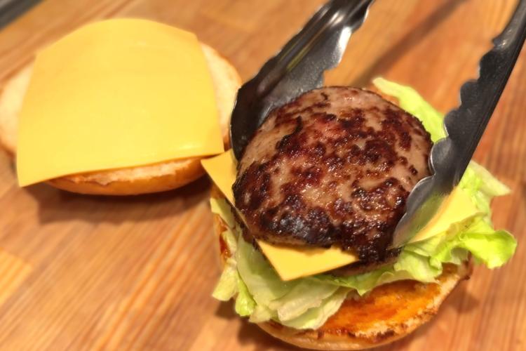 黒毛和牛を仕入れて、自社工場でパティを手作りしています。