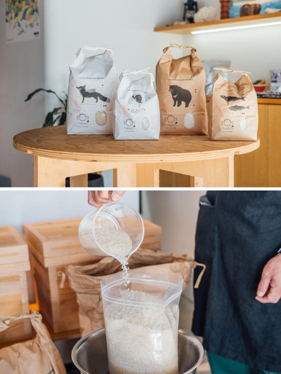 店のパッケージには、白石平野と有明海を舞台にした動物たちの物語が描かれている。そこに込められたコンセプトは「GOOD FARMER AND NEIGHBOR(生産すること、食べることが隣り合う仲間のようにつながっている)」。