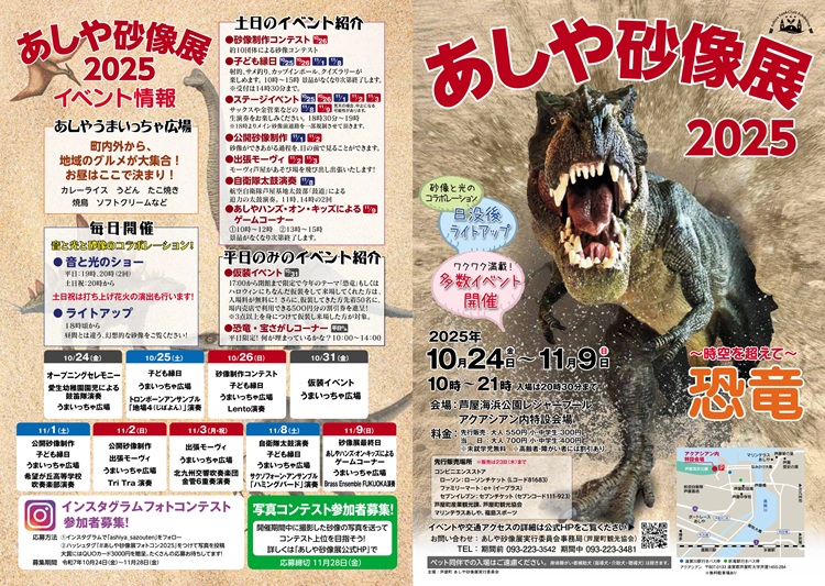 問い合わせ:093-223-3481(あしや砂像展実行委員会)