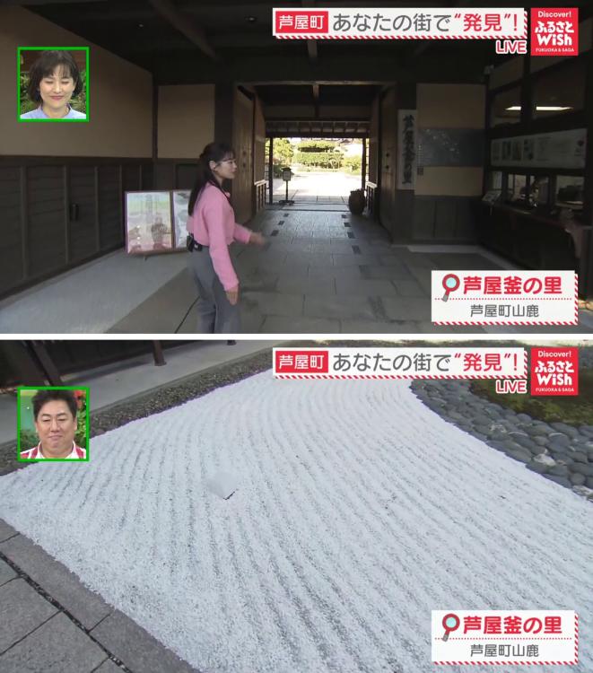 福岡県芦屋町にある『芦屋釜の里』は、室町時代に作られ、茶の湯釜の最高峰と称された「芦屋釜」の復興を目指す施設で、今年で開館30周年を迎えました。 入口では、遠賀川の流れをイメージしたという見事な枯山水の庭園が出迎えてくれます。