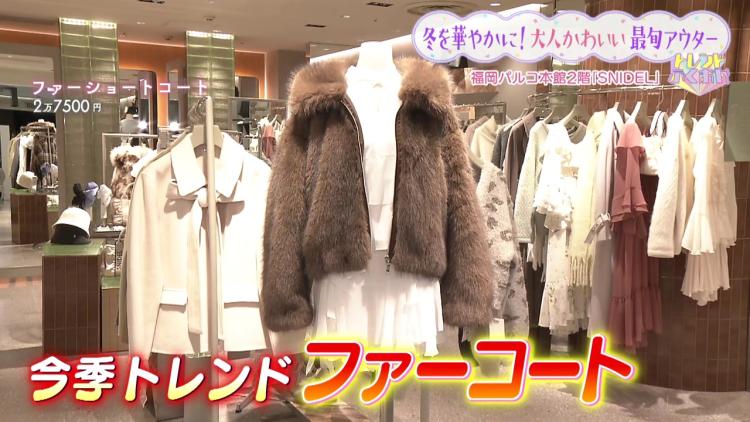 羽織るだけで主役になれる「ファーショートコート」(27500円)がトレンド。