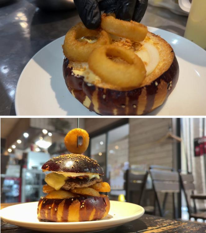 見た目のインパクトも抜群。オニオンリングがタワーのように積まれた個性派バーガー。味の決め手は、酸味のあるサワークリームとピリ辛のチリソース。「他のお店にはない食感」とスタッフも太鼓判を押すメニューです。
