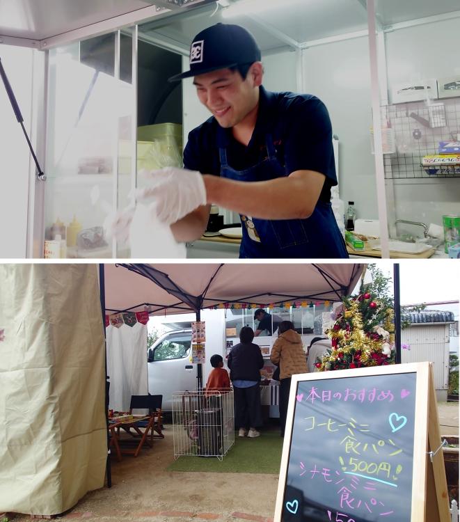 のどかな風景の中に佇む、民家の庭で営業するキッチンカーです。