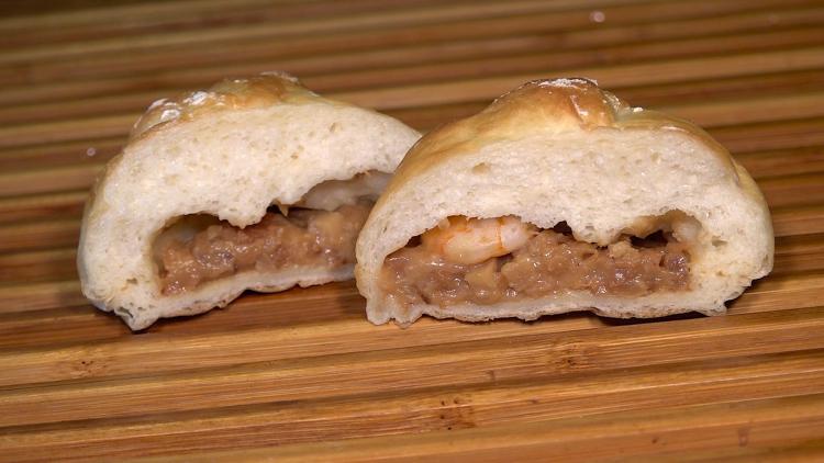 豚まんをイメージしたふんわりパンの中には、具材がたっぷり。