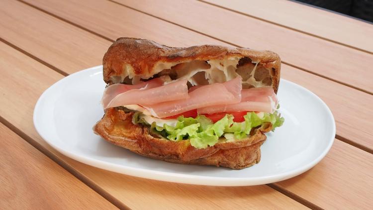 企業秘密のスパイスで香りづけした、こだわりの自家製ポップオーバーを使ったサンドイッチを提供しています。