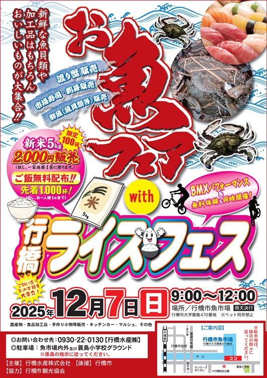12月7日(日)は、福岡県行橋市の『お魚フェアwith行橋ライスフェス』に行かなきゃ損!