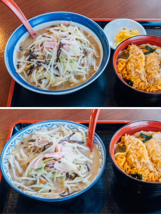 写真上:「ミニちゃんぽん(普通サイズ)+ミニカツ丼」( 税込1,290円) 、写真下:「ミニミニちゃんぽん(女性向け)+ミニカツ丼」( 税込1,150円)