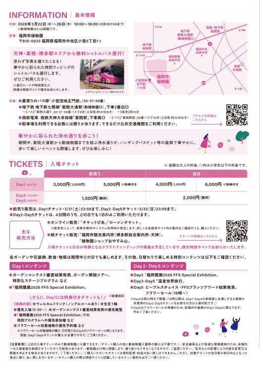 2026年3月22日(日)から26日(木)の5日間、福岡市植物園で初開催される「Fukuoka Flower Show 2026(以下、FFS2026)」。先日、その全貌がわかる最新情報が発表され、12月10日(水)から入場チケットの販売がスタートしました!