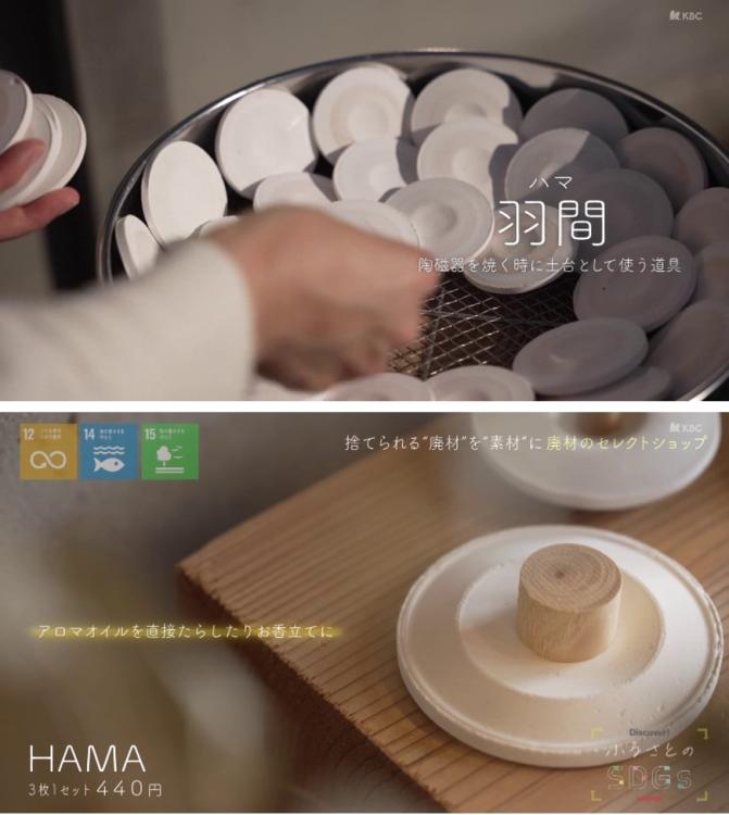 代表的なのが、有田や波佐見といった有名な陶磁器の産地から出る「羽間(はま)」です。これは陶磁器を焼く時に土台として使われる道具ですが、一度焼成に使われると廃棄されてしまいます。その廃棄に費用がかかるという事実に衝撃を受けた『MATERIAL MARKET』の久保睦さんは、「何かに使えるのではないか」と考え“素材”として販売してみることに。すると、お香立てやアロマオイルの皿として使うなど、新たな使い方で、次々とお客さんの元へ旅立っていったそうです。「HAMA」(3枚1セット440円)