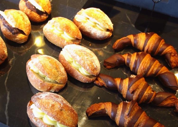 クリームをたっぷりサンドした、甘いもの好きにはたまらないスイーツパンも。