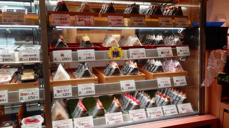 ショーケースには、約25種類のおにぎりが並びます。