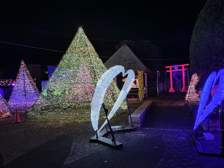 会場内には、期間限定のイルミ神社も出現。ピンクの鳥居をくぐり、白いハートの絵馬にあなたの願いを込めて掛けましょう!絵馬はイベント期間終了後、大富神社(福岡県豊前市)に奉納されます。