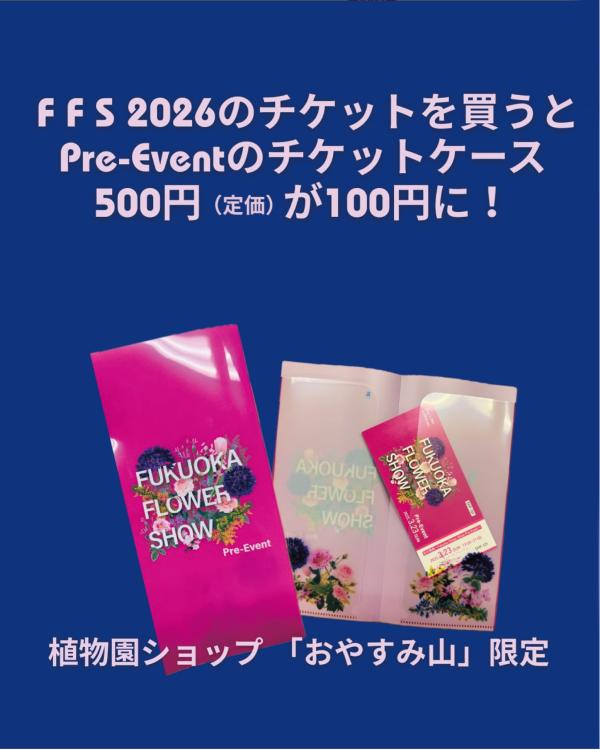 また、『Fukuoka Flower Show 2026』のチケットを『おやすみ山』で購入すると、『Fukuoka Flower Show Pre-Event』のチケットケース(定価500円)を100円で購入することができます。
