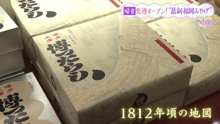 パッケージには1812年頃の博多の古地図がデザインされており、宮本アナも「この包装紙だけで半日は楽しめる」と太鼓判を押すほどの凝りよう。大切な人へ、味だけでなく“博多らしさ”をお届けできるステキなおみやげになりそうです。