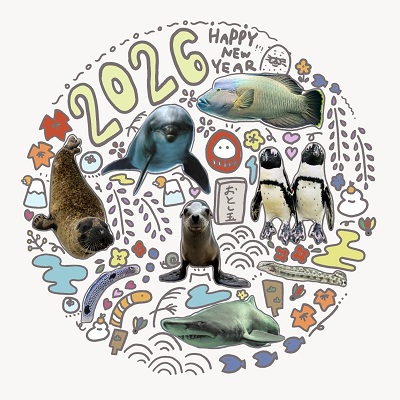 さらに、1月1日(木・祝)の来館者には、スタッフさんがデザインしたオリジナルステッカーをプレゼント!イルカやアザラシ、チンアナゴたちがキュートにデザインされている記念ステッカーで、なくなり次第終了なので、早めの来館がおすすめです♪