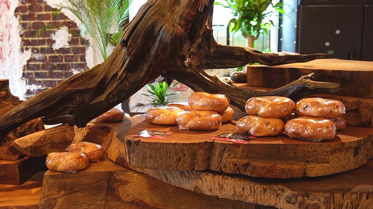 2025年4月にオープンした、本場ニューヨーク仕込みの本格ベーグルが常時40種類ほど並ぶ専門店です。外はバリッと中はモチモチの食感が魅力で、対馬産の鯛を使用したフィレオフィッシュなど個性豊かなサンドも楽しめます。