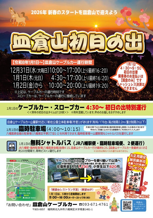 問い合わせ:093-671-4761( 皿倉山ケーブルカー)