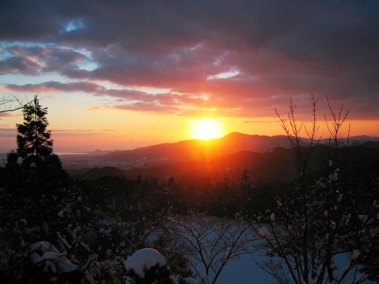 空がゆっくりと茜色に染まり、響灘や北九州の街並みの向こうから太陽が顔を出す瞬間は、言葉を失うほどの美しさ。毎年多くの人でにぎわいます。