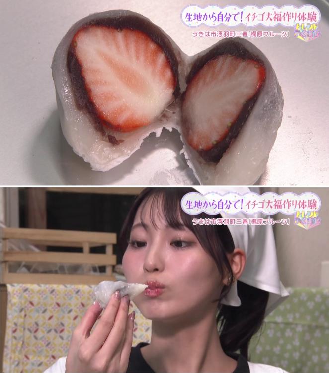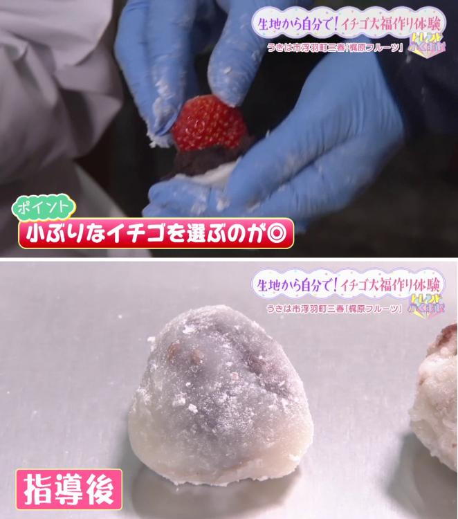 再挑戦して完成した大福は、中に入れた「恋みのり」がとってもジューシー!「今までで1番おいしい!」と、自分で作った出来立ての味に大満足でした。
