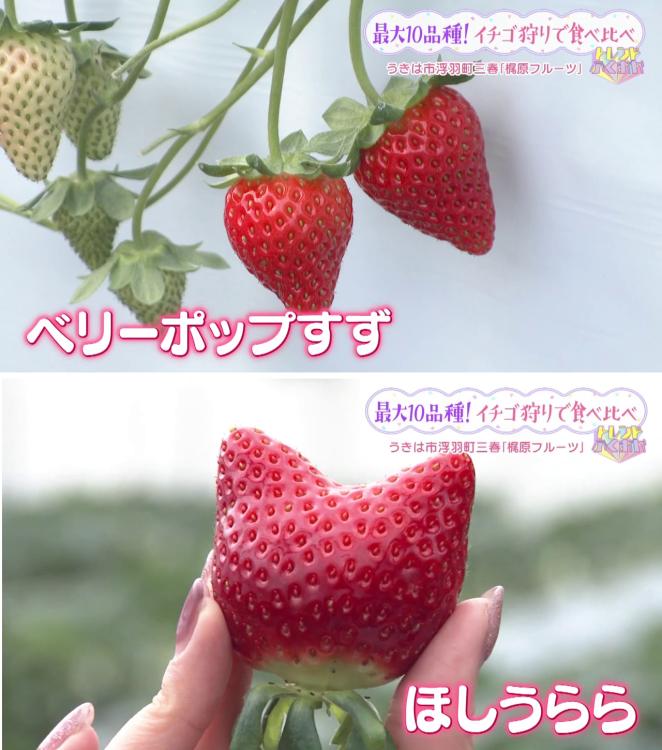「あまおう」をはじめ、優しい甘さの「ベリーポップすず」、 そして猫の耳のような形が可愛い「ほしうらら」など、珍しい品種も!