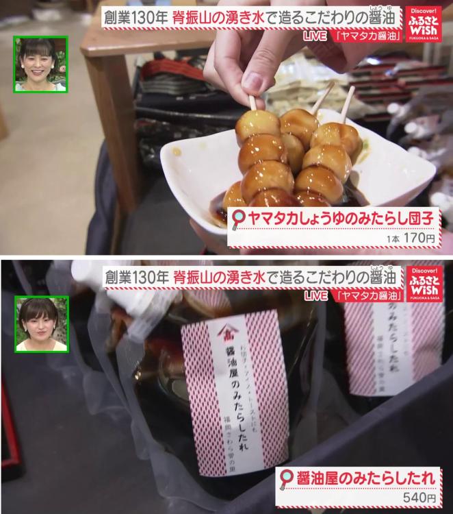 1番人気は、早良産のお米で作った団子に特製ダレを絡めた「ヤマタカしょうゆのみたらし団子」(1本 170円)。「醤油の旨みがしっかり効いていて、お団子もモチモチ!」とリポーターも絶賛する一品です。