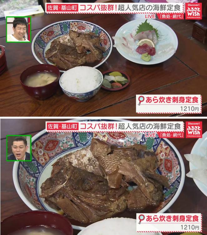 魚好きにぜひ食べてほしいのが「あら炊き刺身定食」(1210円)。