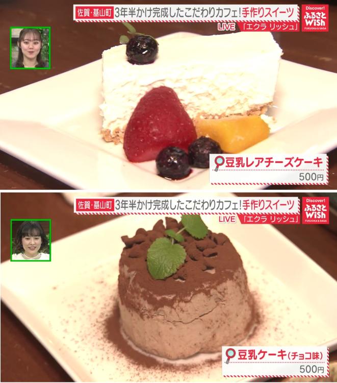真っ白で美しい「豆乳レアチーズケーキ」(500円)は、体に優しい豆乳ときび砂糖を使用。ひと口食べた深川リポーターは「なめらか!ねっとり感がすごくて、とってもおいしい!」と絶賛。