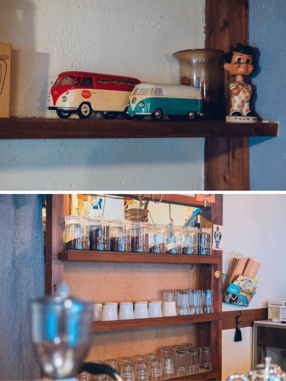 引き戸を開けると、築50年を超える木造アパートの一室がそこにある。でも決して古びているわけではない。アンティークの家具や雑貨、ファイヤーキングのコーヒーカップ。まるで友人の家を訪ねたような居心地の良さが漂う。