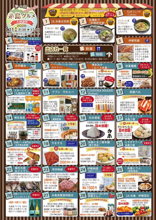電話・問い合わせ:092-321-0123( 糸島グルメ大感謝祭実行委員会)