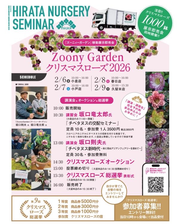 今週末は、長野県長野市でクリスマスローズの育種生産を手がけている人気ナーセリー『Zoony Garden』の代表である坂口さん親子を迎え、講習会と展示即売会を開催。