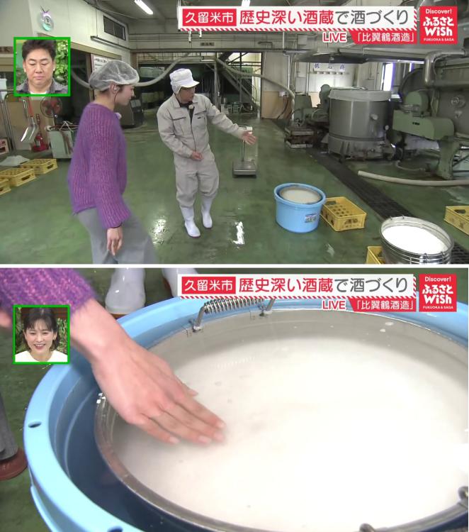 大久保リポーターは、発酵途中の「純米吟醸のもろみ」を特別に試飲させていただきました。