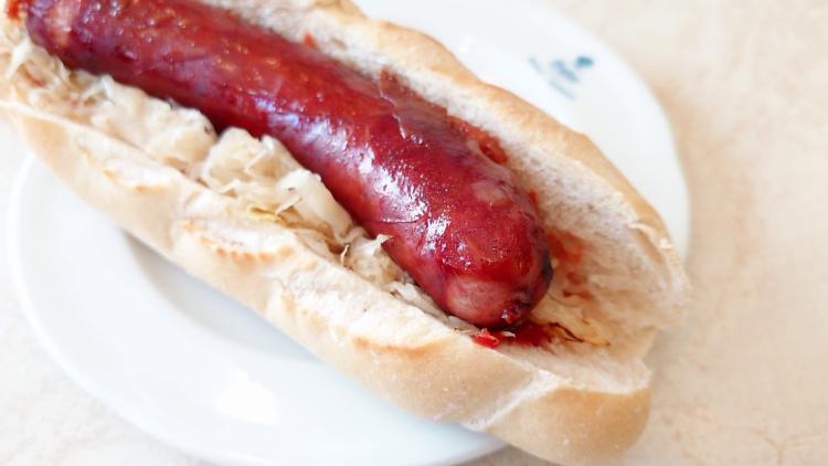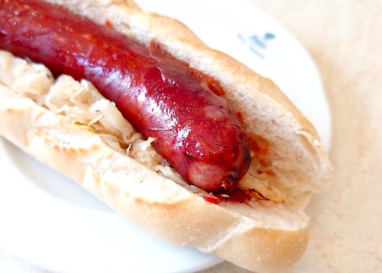極太のチーズ入りソーセージを挟んだホットドッグです。