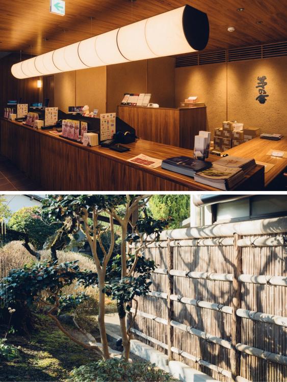 まだ一般開放されていませんが、店内奥へ進むと、参道の賑やかさが嘘のように、静かな庭園が広がっています。この庭は「だざいふ景観賞」を受賞した名園で、石田三成が献上したと伝わる灯籠も残されています。
