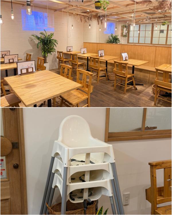 全席テーブル席で、子ども用の椅子も用意されているため、お子様連れでも安心して利用できます。