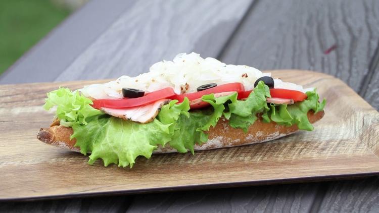 福岡県産小麦と北海道産ライ麦を使用した、歯切れの良いカンパーニュ生地がベースとなっています。