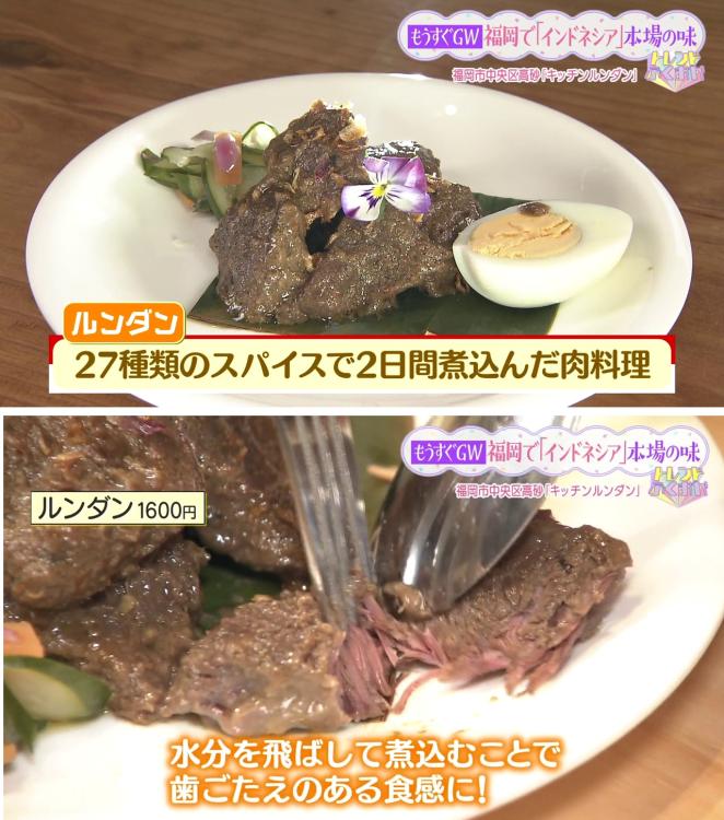 看板メニューは、店名にもなっている「ルンダン」(1600円)。
