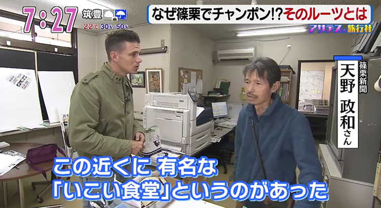 そこで、地元の新聞社なら何か知っているかもと、篠栗新聞を訪ねてみることにしたボビー。そこで天野政和さんが、「有名な『いこい食堂』で聞いてみたら?」とアドバイスを受け、店主の娘である藤田敏子さんのもとに向かいます。