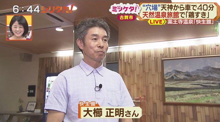 今回は、古賀市の温泉旅館「快生館」にお邪魔しております。