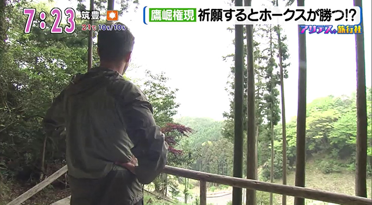 「鷹=ホークスってこと?」と半信半疑ながら、「鷹崛権現」について聞いてみようと、「みやこ観光まちづくり協会」へ向かうボビー。そこで水上斗夢さんが教えてくれたのが、「鷹崛権現」のご利益話。それによると、口コミで「鷹崛権現」を知ったホークスファンが、勝利祈願に参拝したところ、以降、ホークスは連勝!なんとその年に見事、優勝を決めたといいます。