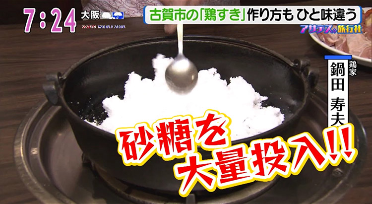 この鶏肉を使ったすき焼きは、古賀市民の愛する郷土グルメのよう。牛肉を使う一般的な「すき焼き」と、作り方に違いはあるのでしょうか?居酒屋「鶏家」の鍋田寿夫店長に「鶏すき」を実演してもらいます。すると…?!