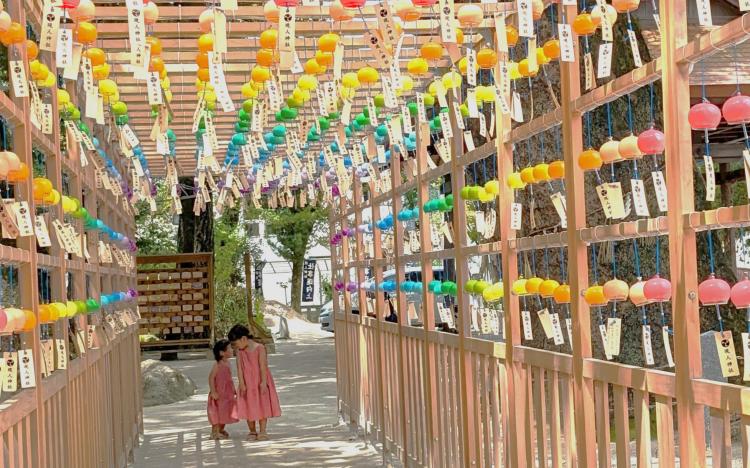 ※アサデス。KBCで紹介!【夏祭り】虹色の風鈴回廊『現人(あらひと)神社』 ケーキ店とコラボした「風鈴ゼリー」もかわいい♪(那珂川市)