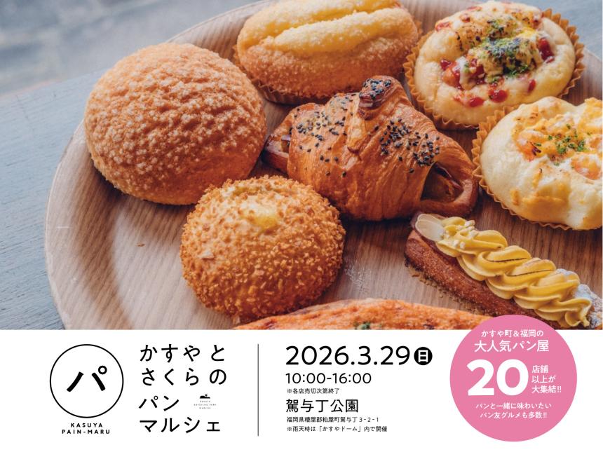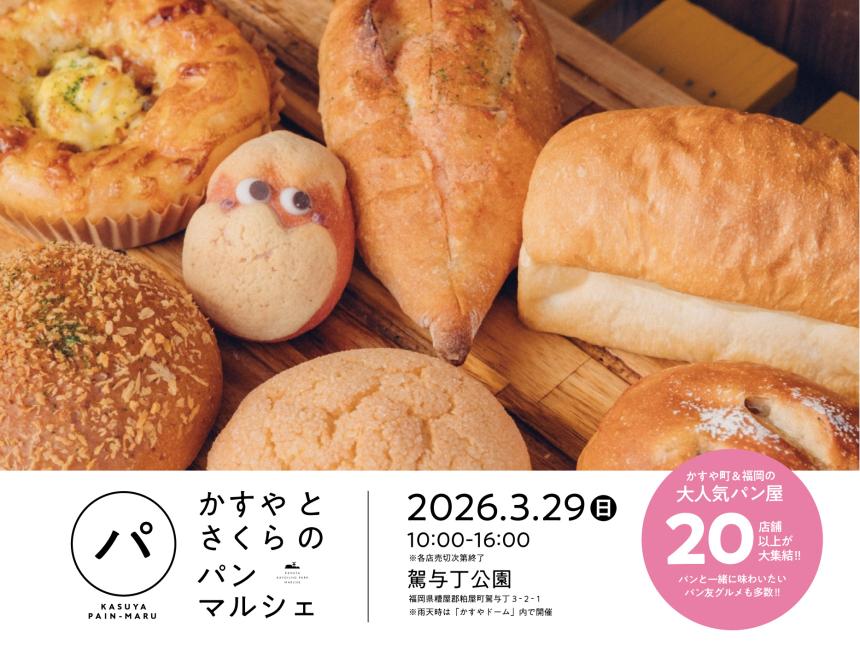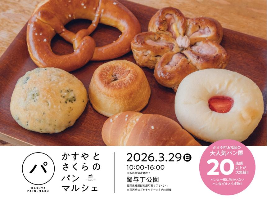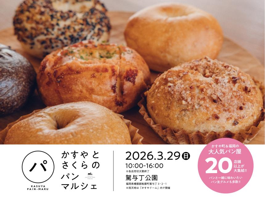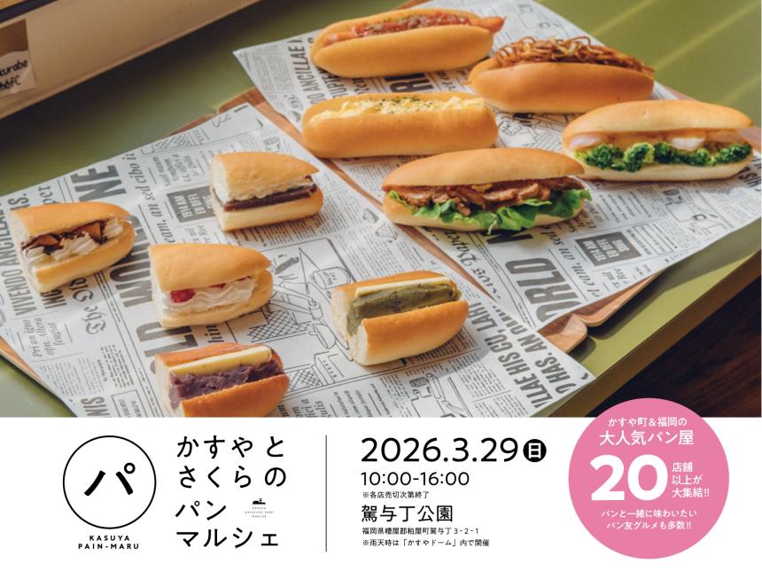 【3/29】前代未聞の花見&パンマルシェ!超人気店が桜名所・駕与丁公園に大集結!ワークショプ&マーケットも!『かすやとさくらのぱパンマルシェ』(福岡・粕屋町)【イベント】